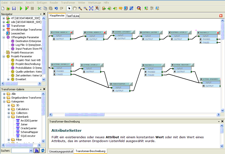 Im Bereich der Automatisierung gelangt auch das System FME zum Einsatz. Mit dessen Hilfe lassen sich neben den Konvertierungsaufgaben viele Bearbeitungs- und Qualitätssicherungsschritte automatisieren. So sind bspw. auch tägliche Aktualisierungen und Synchronisierungen zwischen verschiedenen Erfassungssystemen (z.B. CAD und GIS) möglich.