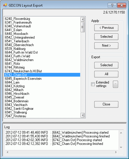 As a result of this late implementation of the layout specifications, the export process is completely separate from the collection and administration of data. The layout definition can be adjusted to current geometric information at all times, without incurring any changes, e.g. in order to update individual pages of an atlas at a later date.